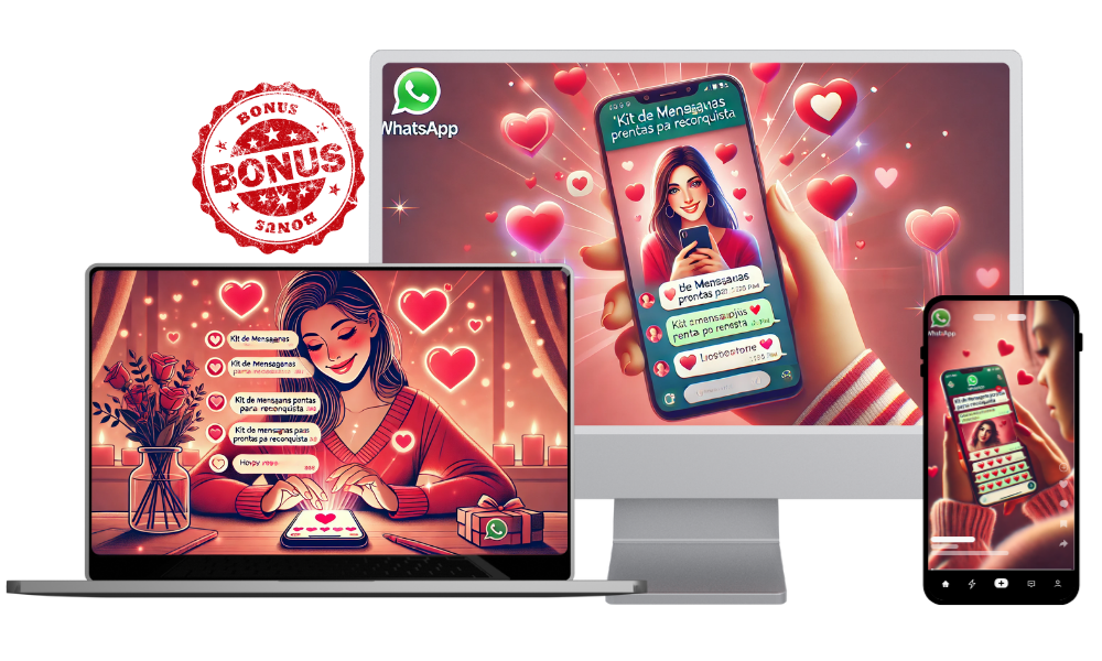 - Super bônus: Kit de Mensagens Prontas para Reconquista – Mensagens prontas para você enviar ao seu ex e reacender os sentimentos.