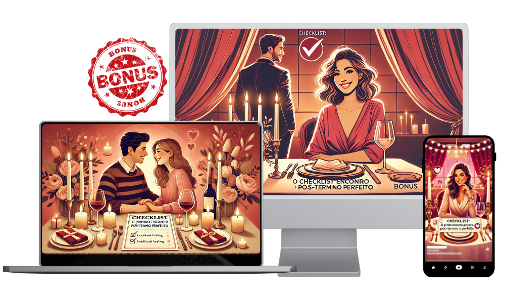 - Super bônus: Checklist: O Primeiro Encontro Pós-Término Perfeito – Como fazer com que o primeiro reencontro seja inesquecível e repleto de conexão emocional.